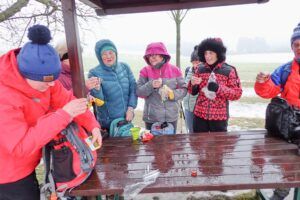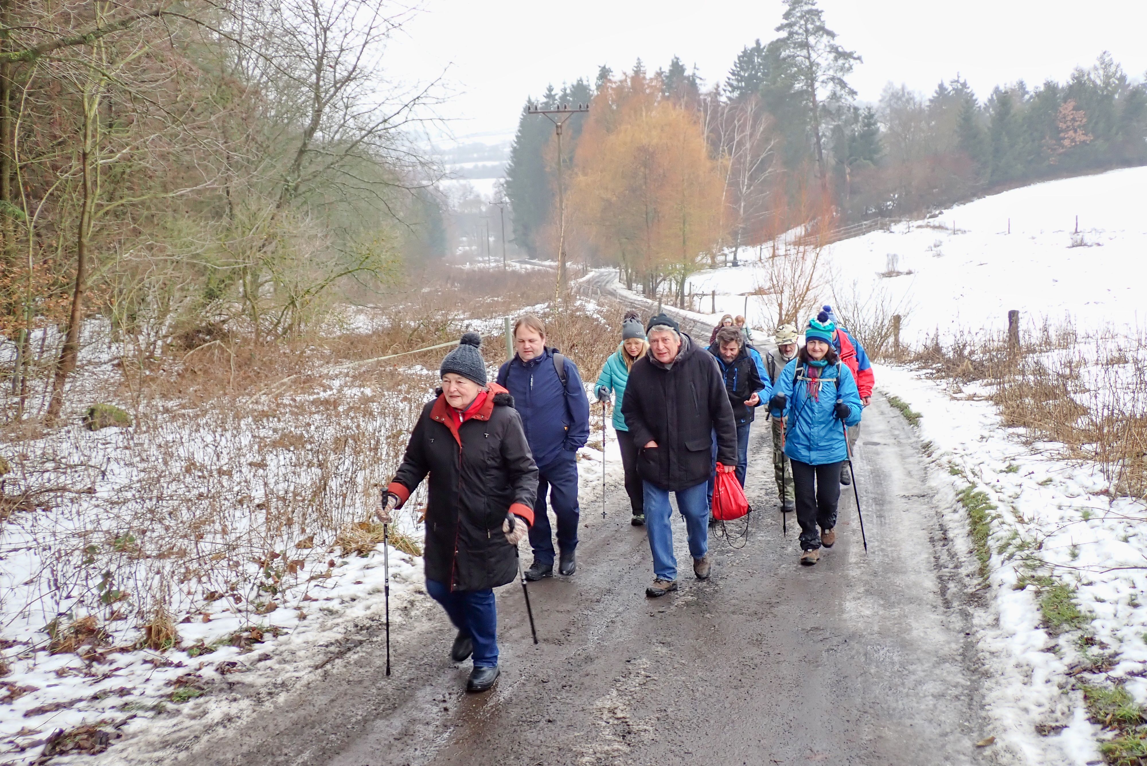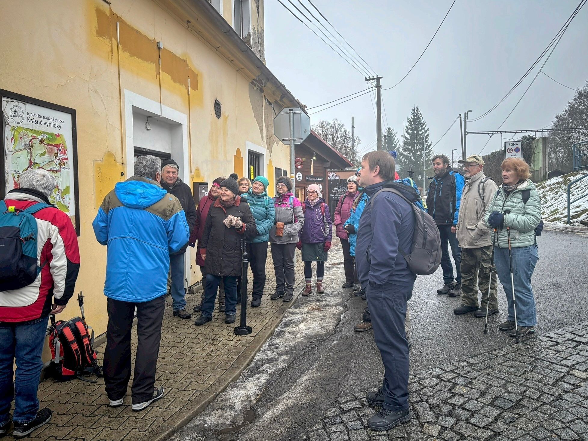 I přes nepříliš příznivé počasí (mlhavo, +2 stupně °C) se sešlo v Mnichovicích na nádraží 19 nadšenců aby se vydalo po „Krásných vyhlídkách do krásného nového roku“. Přestože po cestách čekal jen sníh, led a bláto panovala dobrá nálada. Ani mlhou zastřené vyhlídky to nemohly zkazit.